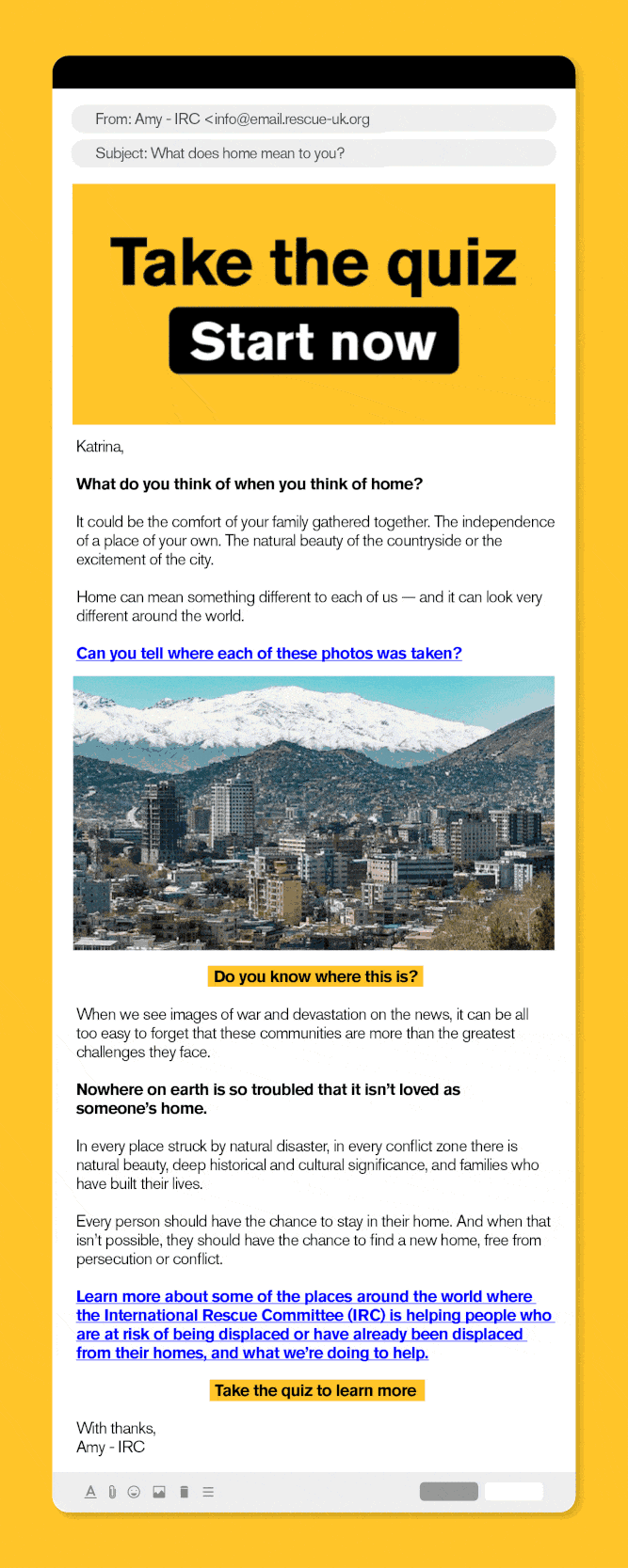 We’ve worked in partnership with the IRC since 2021 to create effective fundraising campaigns - responding rapidly to emergencies and developing longer term appeals to engage supporters - raising millions of pounds to support people in Ukraine, Gaza, Sudan and other crisis zones around the world.